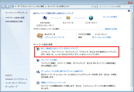 ネットワークと共有センターが開いたら、「新しい接続またはネットワークのセットアップ」をクリックします。